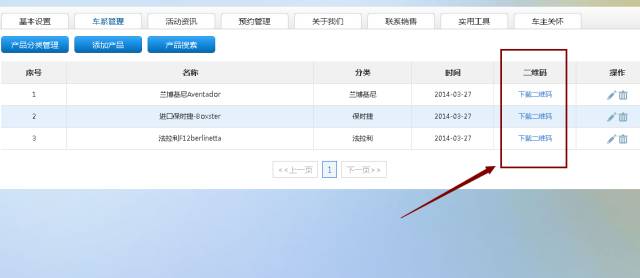 (可以下载相对应的汽车产品二维码,扫码后可以看到汽车对应的详细信息,适合车展等汽车销售场景使用。)
